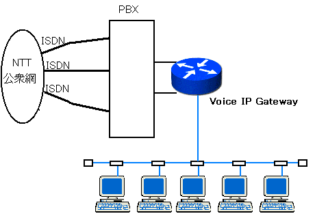 PBXの内線側をIPゲートウェイでIP化すれば、既存のPC LANにそのデータを流せる。電話機は直接Ethernetに継ぐ