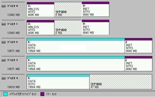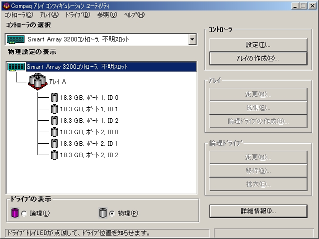 ハードウェアRAIDで構成した複数の物理ドライブからなる1台の論理ドライブは、OSからは1台の物理ドライブとして見えます。 Arrayコントローラーでフォルトトレランスを有効と設定しても、OSのディスク管理ツールではフォルトトレランスが無効と認識されていますが、システムとしてはフォルトトレランスは有効です。
