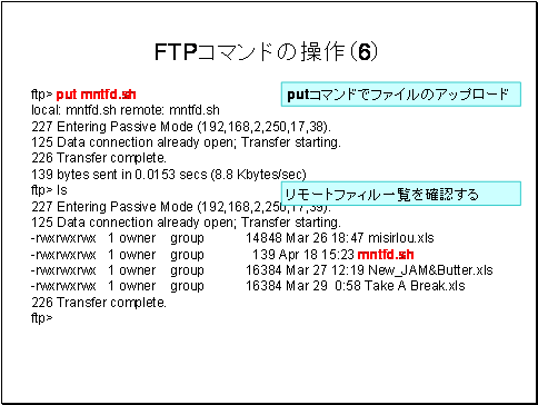 FTPコマンドを実行してみましょう。Unix互換OSやWindowsのコマンドプロンプト操作と共通する部分もあるので、通常のコマンド操作が出来る場合には困難な事は無いでしょう。