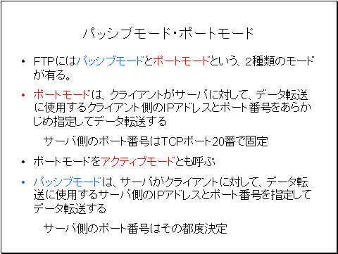 FTPにはパッシブモードとポートモードという、2種類のモードが有ります。