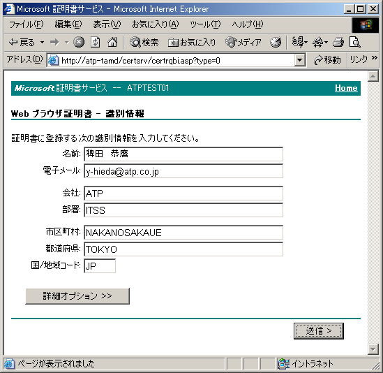 注 必須フィールドは証明書サービス管理者が決定できます。