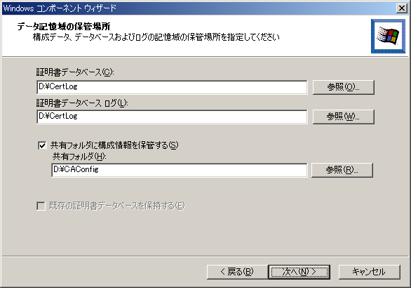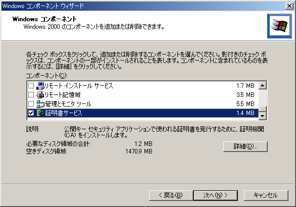 Active Directryドメインのメンバーではない場合には、エンタープライズCAオプションはグレーアウトし選択できません。