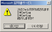 10. 前項で入力したパスが存在しない場合には、次のダイアログボックスが表示されます。[はい(Y)]をクリックします。