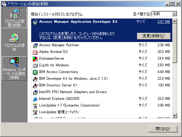 2. [Windowsコンポーネントの追加と削除]をクリックします。