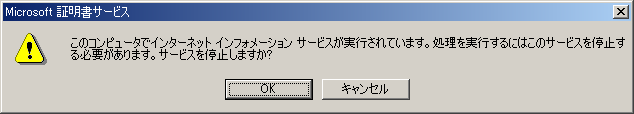 11. 既にIISがインストールされている場合には、次のダイアログボックスが表示されます。[OK]をクリックします。