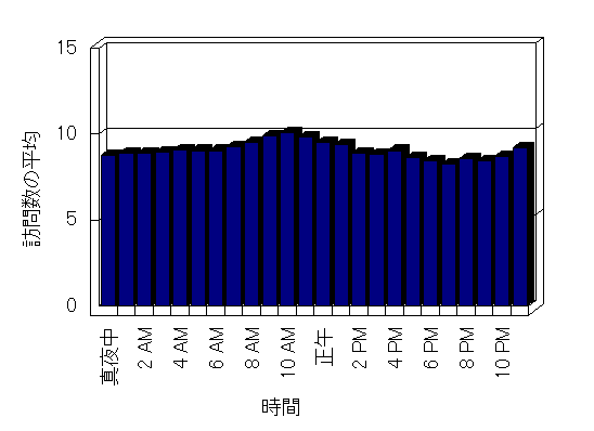要求数と訪問数の平均と、訪問あたりの要求数の平均を時刻ごとに示します。