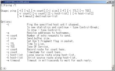 「ping /?」で使用可能なオプションを確認できる。これもOSによりが異なる