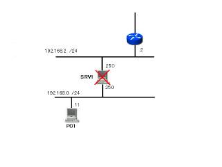 というコマンドを実行しても駄目である。しかし、PC1はSRV1と通信は可能だ。PC2もSRV1と通信は可能だ。