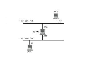 というというアドレスが設定してある。接続してあるネットワーク上に重複するIPアドレスが存在しなければ、また、それぞれのNICに重複しないIPアドレスを設定するのならば、このような構成も可能である。しかし、SRV1でルーティングを有効にしても、PC1とPC2は通信できない。物理的に別なネットワークセグメントとして構成してあるのにもかかわらず、PC1とPC2それぞれが所属するネットワークアドレスが同一なため、ルーティングの対象にならないからである。