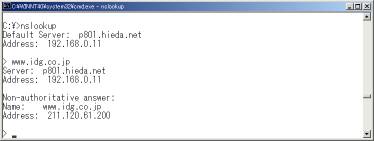 DNSサーバには自分が解決できないクエリーをほかのDNSサーバで解決する。その結果を一定時間キャッシュとして保持する。保持している間はあたかも自分が持っている情報のごとく名前解決に使用する。この情報はnslookupのクエリーでも表示・確認可能だ。<画面12>