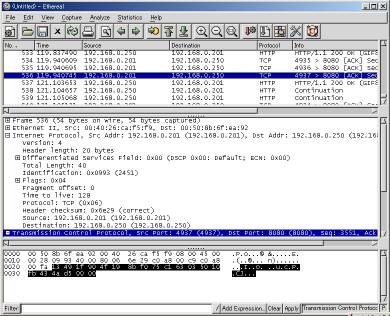 最近はやりの無償ネットワークアナライザー"Ethereal"。見かけも"ネットワークモニタ"そっくりだ。
