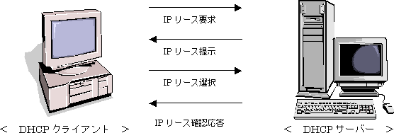 DHCPは、IPによる通信に先立って必要なパラメータ(IPアドレス、ネットマスクをはじめデフォルトゲートウェイ、ネームサーバー)を、個々のマシンには設定しないで、DHCPサーバーから動的に取得できるようにするプロトコルです。最近のPCのOSでは、DHCPクライアントをサポートしており、Windows95/98、NTやMacintoshでもこの機能を使うことができます。