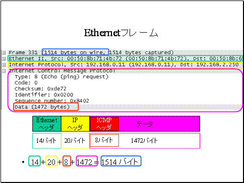 イーサネットデータの最大サイズは1500バイトです。となるとMTUの上限も1500バイトということになります。