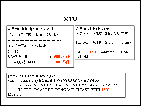 インターネットワーキング上で、IPパケットを分割せずに転送可能なパケットサイズをMTU Max Transfer Unitといいます。