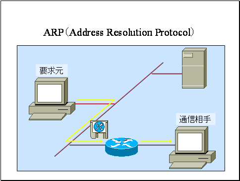 ネットワーク層のプロトコルであるARPは、レイヤ3 ネットワーク層の論理アドレスに対応するレイヤ2 データリンク層の物理アドレスの対応を解決します。またこの解決のプロセスをアドレス解決と呼びます。この機能はTCP/IPで必須です。