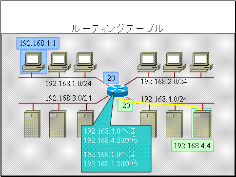 IPアドレス192.168.1.20とIPアドレス192.168.4.20のルータは、