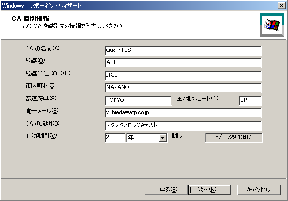 スタンドアロンCAのインストール