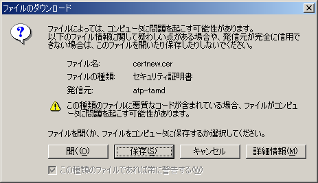 [ファイルのダウンロード] ダイアログ ボックスで [このファイルをディスクに保存する] をクリックし、[OK] をクリックします。