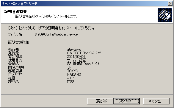 Active Directory 以外の環境での証明書サービス : 証明書のインストールと発行