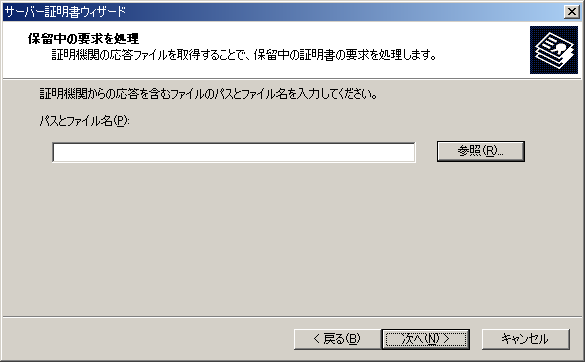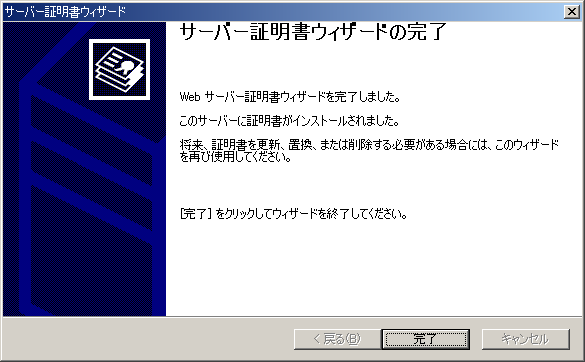 12. [サーバー証明書] をクリックし、サーバー証明書ウィザードを起動します。