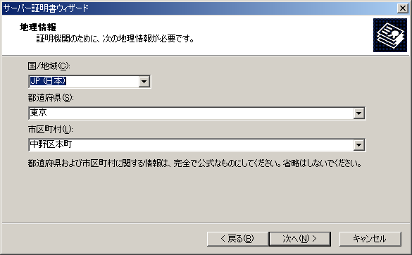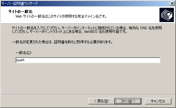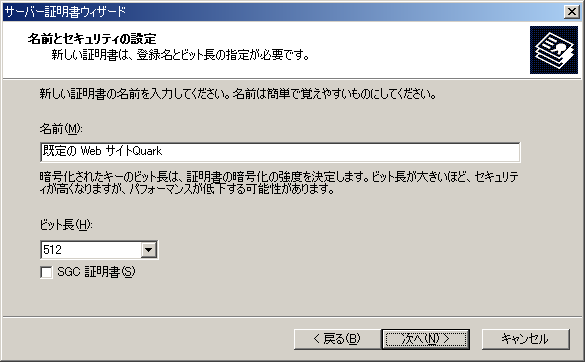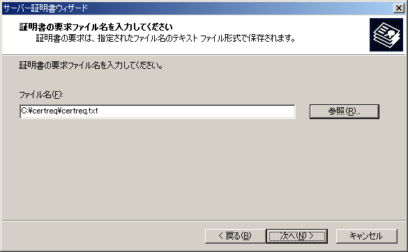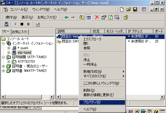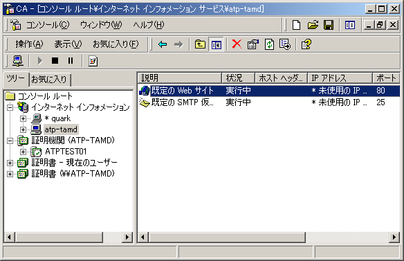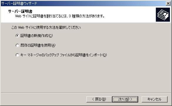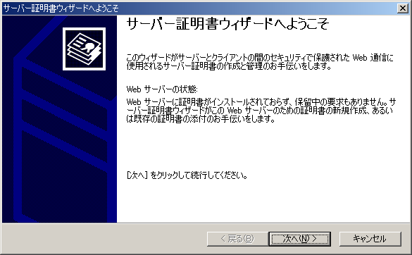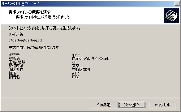 | Active Directory 以外の環境での証明書サービス : 証明書のインストールと発行IIS Web サイトの証明書要求の作成