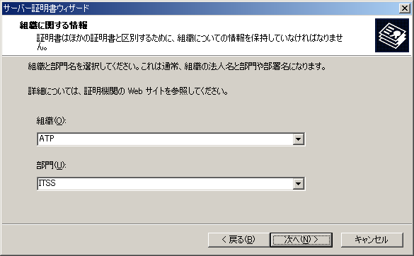 組織名と組織単位を入力し、[次へ] をクリックします。