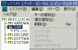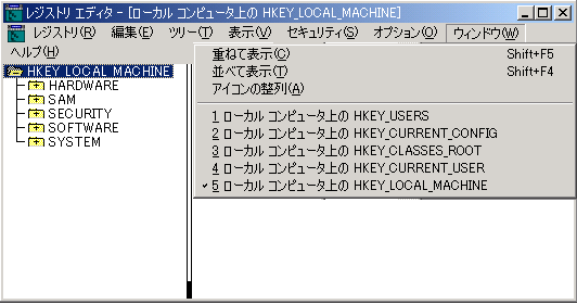 Windows 2000には32bitのregedt32.exeとW9xに添付してあるものと同じ16bitのregedit.exeとが標準に用意してある。