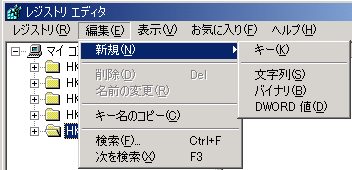 レジストリの内容を編集する時には32bit版を使用すること。16bit版では値の編集・追加に対して完全ではない。