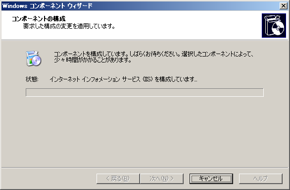インストールしたいサービスを選択した後、OKをクリックしてWindowsコンポーネントウィザード画面に戻る。ここで次へをクリックするとファイルのコピーが始まる。