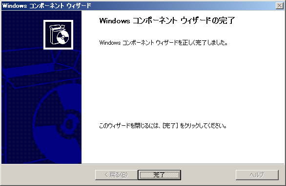 Windowsコンポーネントウィザードの完了画面の表示でインストールは終了である。