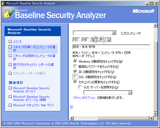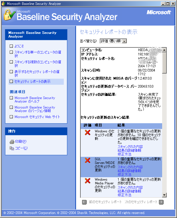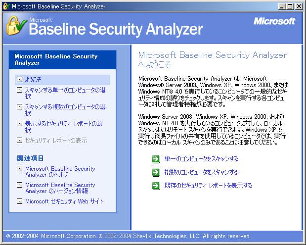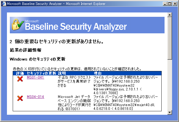 MBSAで何が出来るかのさわりだけでもここに記しておこう。以下の画面キャプチャを見て、