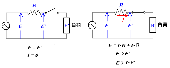 100Vを印加しているところに、負荷をかけて電流が流れたとたん、