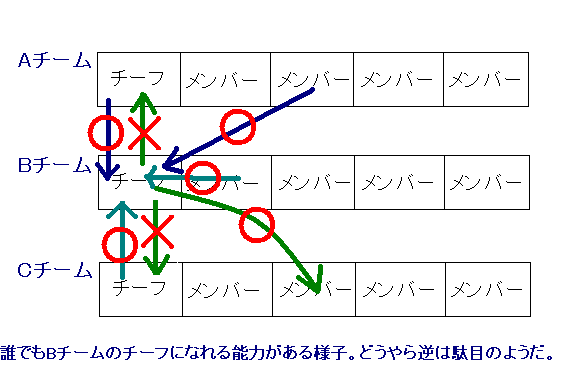 あるチームでメンバーの方が、別のチームでもチーフに選定されるだけの条件を持っているだろうし、あるチームのチーフの方は、他のチームではとてもチーフが勤まらない、という場合もあろう。こうなると、単にチーフと一括りに出来ない。