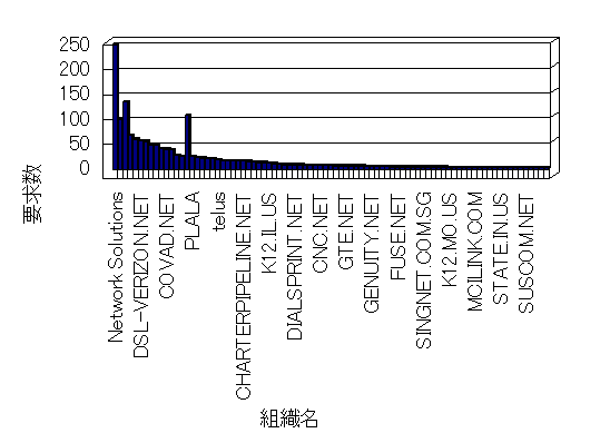 | 組織 | ユーザーにインターネット接続を提供する、商用または非営利団体、学術・行政機関などの、インターネット ドメイン で識別される団体や組織です。Microsoft Site Server Analysis は同じ組織に登録されたすべてのドメインを 1 つの組織としてグループ化します。ドメインがデータベースで使用できない場合は、1 つのインターネット ドメインが 1 つの組織を識別するのに使用されます。 |