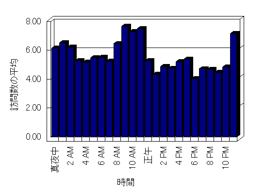 要求数と訪問数の平均と、訪問あたりの要求数の平均を時刻ごとに示します。